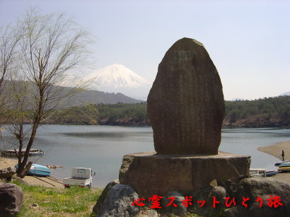私が訪れた時は好天に恵まれ、西湖は日の光を浴び輝き、山々は春を感じ芽吹き始め、その向こうに聳え立つ富士山の姿が非常に美しかった。